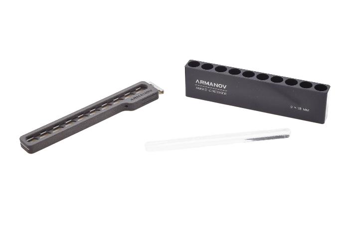 Wraz z testerem otrzymamy specjalny uchwyt pozwalający na szybkie przeniesienie i umieszczenie w pudełku sprawdzonej amunicji