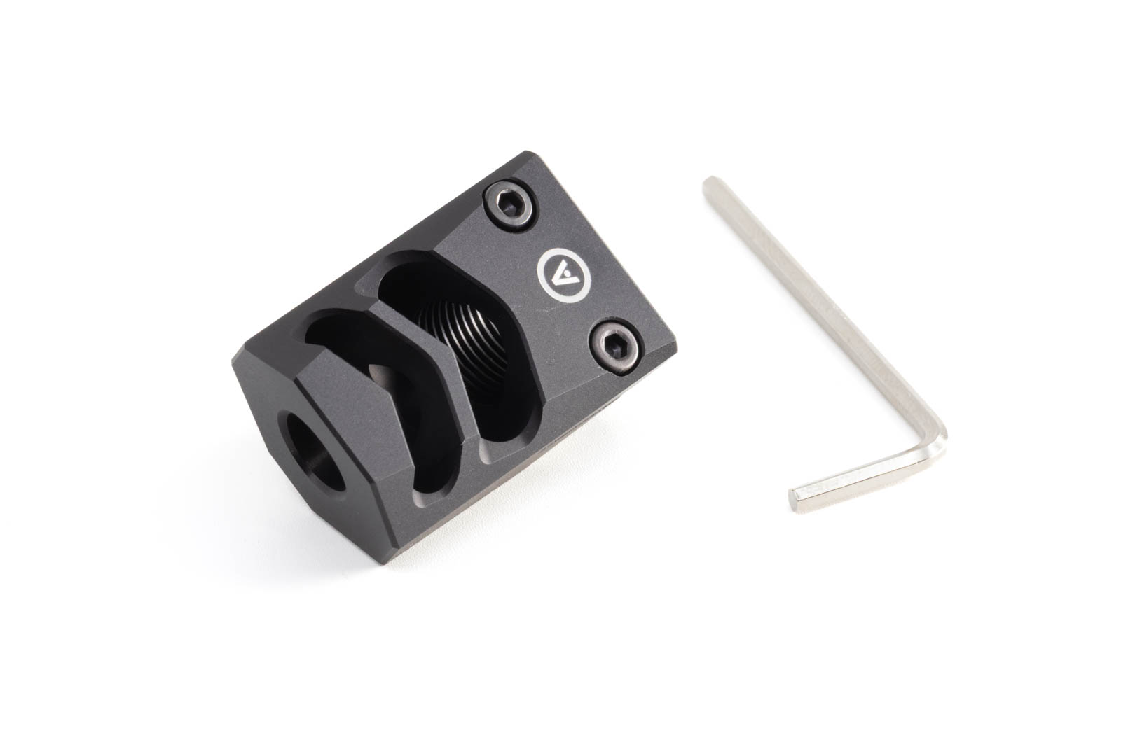 Przykręć kompensator na lufie do preferowanej pozycji i dokręć obie śruby dostarczonym kluczem imbusowym, aby zablokować go w ustalonej pozycji.