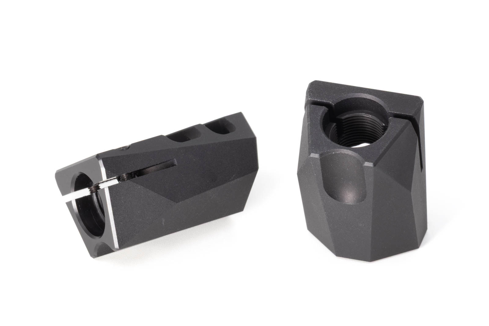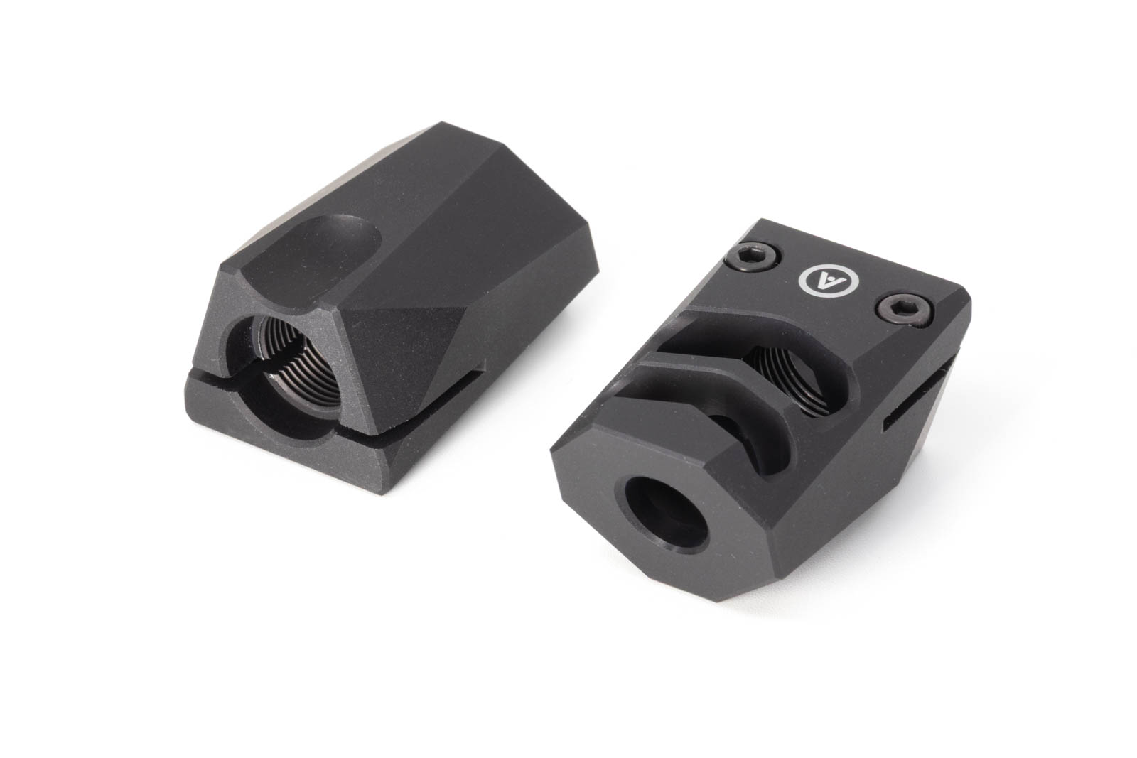 Nowoczesny kompensator pistoletowy w kalibrze 9mm z komorami w kształcie litery V