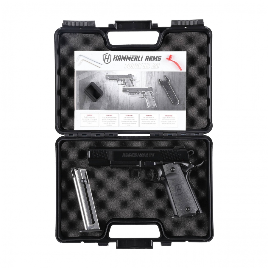 Pistolet Hammerli Forge H1 .22 LR zapewnia użytkownikowi:- Opartą o ergonomię pistoletów Colt 1911 konstrukcję zapewniającą realistyczny trening